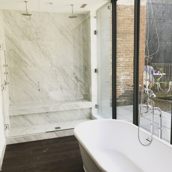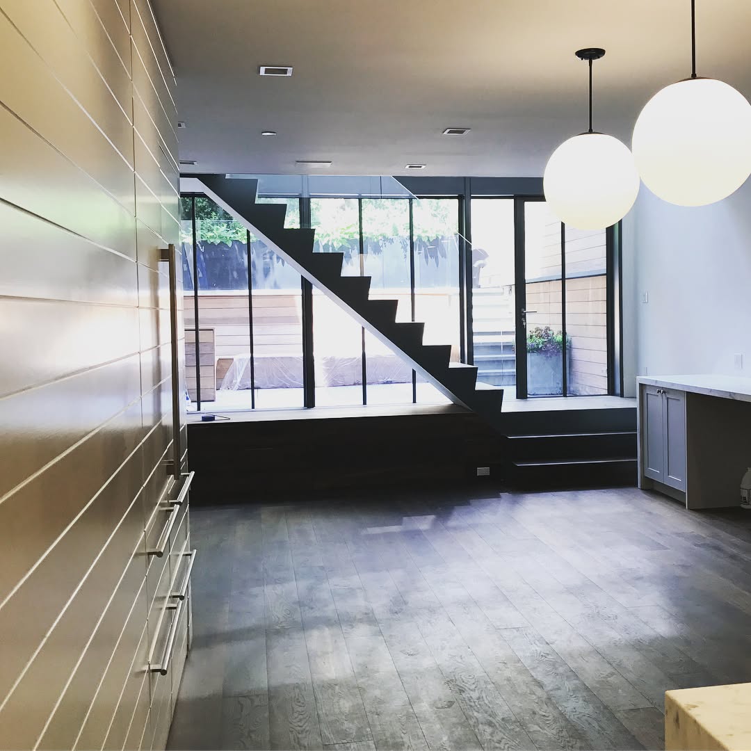 Our Town home project at 317 West 11th St, in its finish phase. Consisting of four floors. The front was completely reconstructed by adding a Brownstone stoop and a new entry way leading down into the basement which did not exist prior.